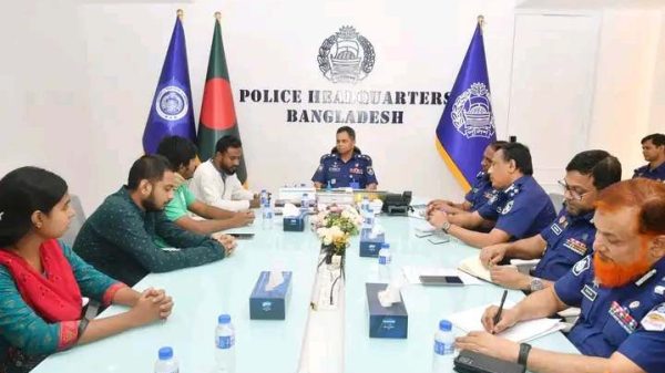 নিজস্ব প্রতিবেদক | বঙ্গ জার্নাল ইন্সপেক্টর জেনারেল অব পুলিশ, বাংলাদেশ মোঃ ময়নুল ইসলাম এনডিসি এর সাথে আজ সোমবার বিকালে পুলিশ হেডকোয়ার্টার্সে বৈষম্যবিরোধী ছাত্র আন্দোলনের সমন্বয়কবৃন্দ সৌজন্য সাক্ষাৎ করেছেন। সাক্ষাতকালে