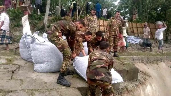 বাংলাদেশ সেনাবাহিনী সিরাজগঞ্জের কাজিপুর থানা সংলগ্ন যমুনা নদীর শহর রক্ষা বাঁধ সংস্কার করেছে। রোববার এ সংস্কার কাজ করা হয়। রাতভর প্রবল বর্ষণ ও স্রোতের কারণে স্থানীয় বাঁধ মারাত্মকভাবে ক্ষতিগ্রস্ত